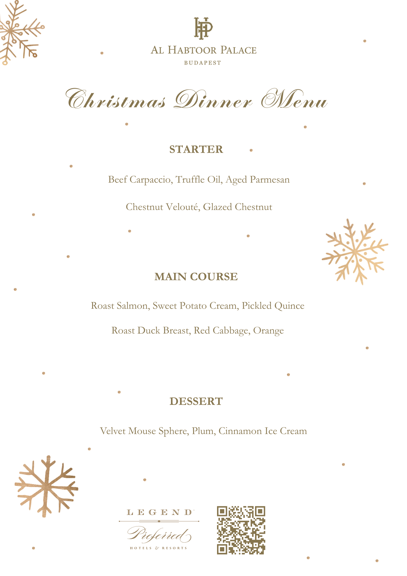 A festive evening awaits, crafted with the warmth and elegance of the season. Enjoy a refined five-course Christmas menu, beginning with comforting flavours of smoky beef and creamy chestnut, followed by traditional salmon and delicately roasted duck served with creamy potatoes and red cabbage. The evening concludes with a velvety cinnamon dessert sphere — a sweet celebration of Christmas night. The ambience is graceful and inviting, the perfect setting to share the holidays with your loved ones.